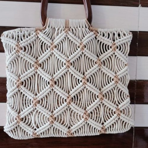 Cotton Stylish Handcrafted Macrame Bag with Wooden Handle