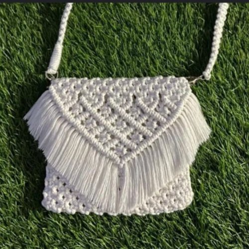 Designer White Macrame Crossbody Bag
