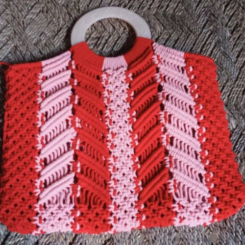 Handcrafted Macrame Hand Bag with Plastic Handle