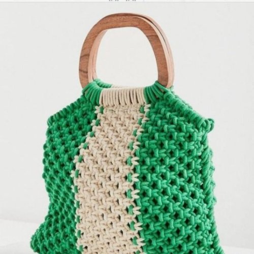 Green Handcrafted Macrame Hand Bag with Wood Handle